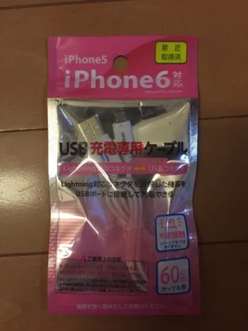 100円のLightningケーブルです。なんかニセモノって感じです。比べてみると一目瞭然です!