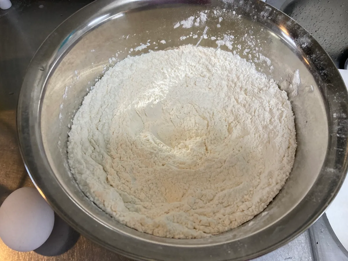 - 2 を 1 に少しずつ加えながら混ぜる(水回し)